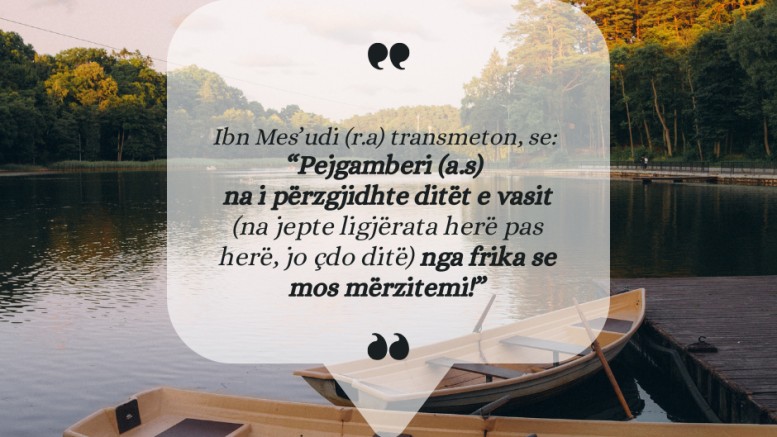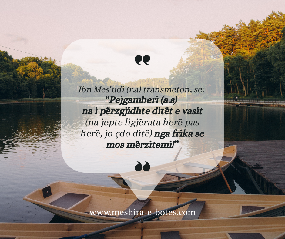 “Pejgamberi (a.s) na i përzgjidhte ditët e vasit (na jepte ligjërata herë pas herë, jo çdo ditë) nga frika se mos mërzitemi!”